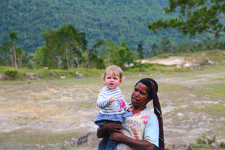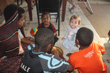 Coen en Samuel waren direct buiten al gaan verkennen wat er te doen was. Genoeg! Overal stenen, bomen om in te klimmen, nieuwe vriendjes. We hebben ze drie dagen bijna niet gezien; ’s morgens kwamen de vriendjes al meedoen bij het ontbijt. Nadat de training rond een uur of twee was afgelopen, gingen we in de rivier zwemmen of nog even een rondje lopen. Aan het eind van de dag hoorde je: “Mogen we naar bed, want we zijn zo moe.” Te moe om nog het avondeten op te eten. Maria was heel de dag in de weer om het huis onveilig te maken en een gezellige ontmoeting met zo’n 20 tot 25 medische vrijwilligers maakte het voor Wijnanda compleet.