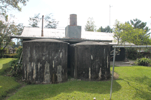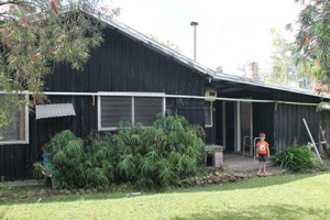 Zijkant van het huis en de watertanks aan de achterkant. Gelukkig zijn ze groot genoeg, zodat we ons in de huidige periode van droogte nog niet al te veel zorgen hoeven te maken.