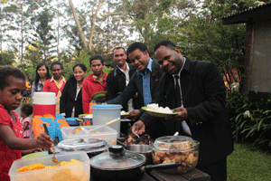 Heel de dag waren we bezig geweest om genoeg eten klaar te krijgen, want natuurlijk moet er gegeten worden. Gezamenlijk eten is hier heel belangrijk – in Nederland trouwens ook. Dus flink wat kippen, het onmisbare stuk varken, groente en rijst klaargemaakt. Het was een heel mooi moment samen met onze vrienden en collega’s!