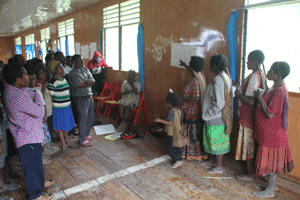 Daarbij spelen gezamenlijke bijbelstudies een hoofdrol. Samen kijken wat God wil dat de gemeente doet. In de eerste plaats natuurlijk het evangelie brengen. Een licht in de duisternis en zout strooien voordat verderf optreedt. Maar ook zorgen voor de zwakken, behoeftigen, zieken. Vanuit onvoorwaardelijke liefde, die niets terug verwacht. Deze boodschap werd duidelijk uit de eerste serie bijbelstudies die we gedaan hebben. In stamtaal, dus ik heb vooral groepjes aan het werk gezet en daarna een presentatie laten geven. Dat ging erg goed; de 45 participanten – predikanten, ouderlingen, diakenen, afvaardigingen van de vrouwenverenigingen en belangstellenden – waren enthousiast. De eerste dag moest ik er rond 5 uur een eind aan breien, anders waren ze doorgegaan tot het donker was. En dan waren we al sinds 8 uur bezig, bijna zonder pauze! “We hebben de laatste tientallen jaren eigenlijk nooit zo’n training gehad. Wel mensen die ons opzochten, maar niet echt samen bijbellezen en dat toepassen,” zo zei iemand. Een ander: “Ja, de dominees hier kunnen wel preken, maar gewoon samen de bijbel bestuderen in groepjes met andere mensen, dat is nieuw voor ons.” Nu zullen de mensen vast wel training hebben gehad in het verleden, maar het laat in ieder geval zien dat ze enthousiast zijn. In september hoop ik terug te gaan om voor ieder dorp/gemeente een aantal mensen te trainen die dan in de gemeentes bijbelstudies gaan begeleiden.